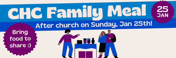 We will be celebrating together with a Family Meal after our Sunday church service on January 25th. Please bring food to share if you are able. A sign-up form will be made available soon.